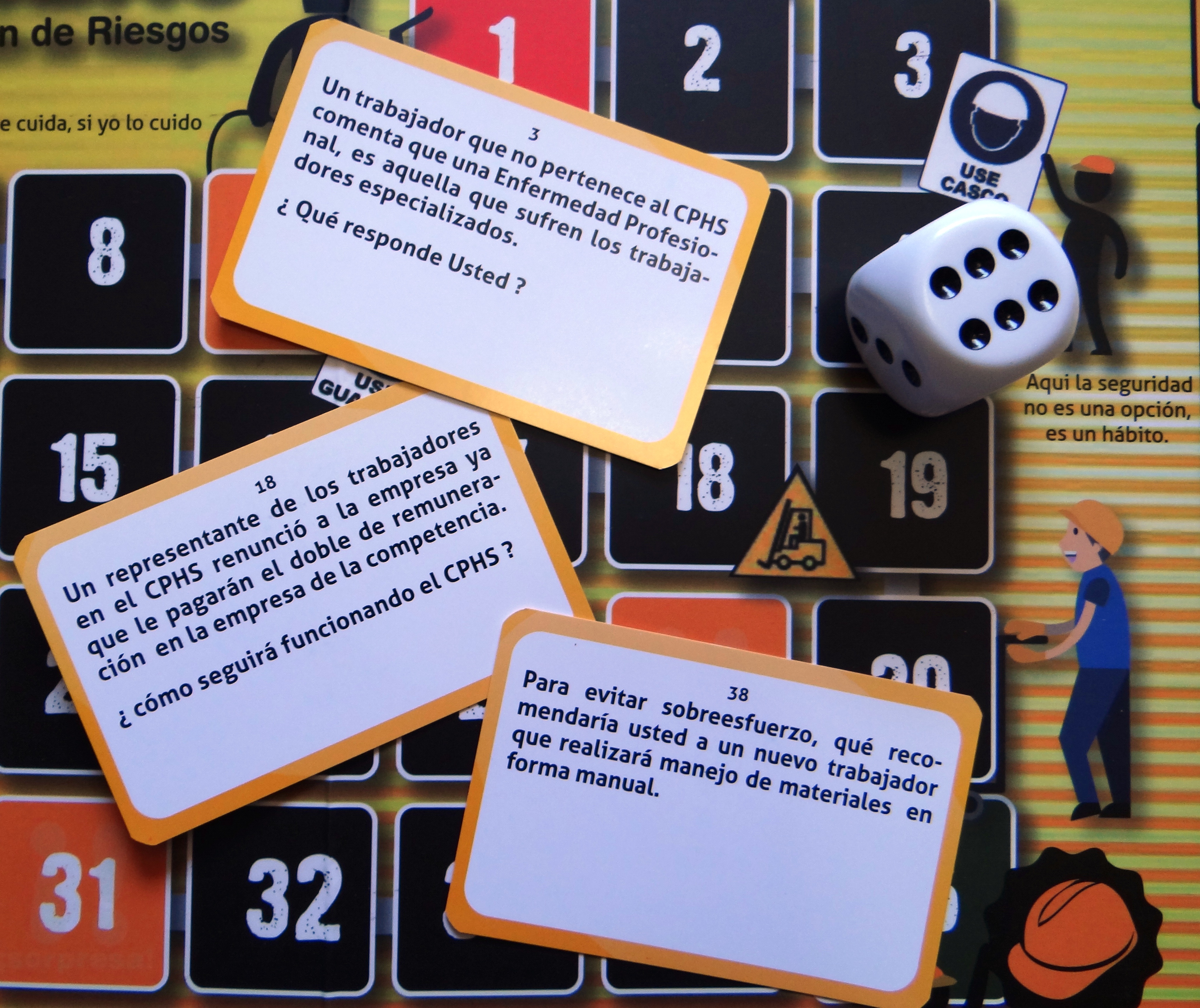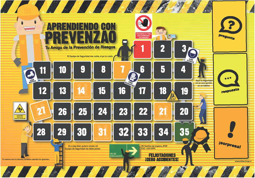 Es un juego de mesa que permite reforzar en forma lúdica los conocimientos vistos en un curso de capacitación o asignatura de Prevención de Riesgos Laborales y la gestión de Comité Paritario de Higiene y Seguridad.